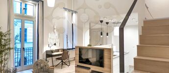A 41 nm-es (plusz 8 nm galéria és 2 nm terasz) 1. emeleti lakás a belső udvarra néz, így rendkívül csendes, mégis néhány lépésre van a város lüktetésétől.