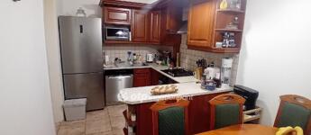 A lakásban három nagy szobából kettő az ucára, egy az udvarra néz. A fürdőszobája is méretes, kád és tusoló is található benne. A WC külön bejáratú. Jól felszerelt konyhája egyben van az étkezővel. A konyhából egy nagy kamra nyílik, amiből még egy kis spejzba jutunk. A fűtést gáz-cirkó kazán biztosítja. Négyméteres belmagassága miatt kiválóan galériázható.