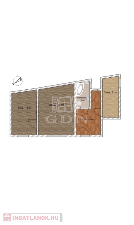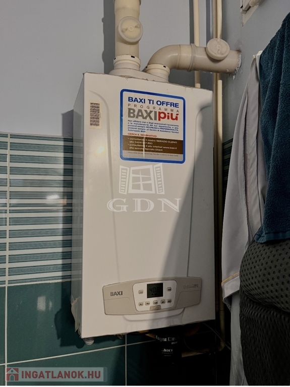 A 61 négyzetméteres ingatlan a második emeleten helyezkedik el, és cirkó gázfűtéssel rendelkezik.