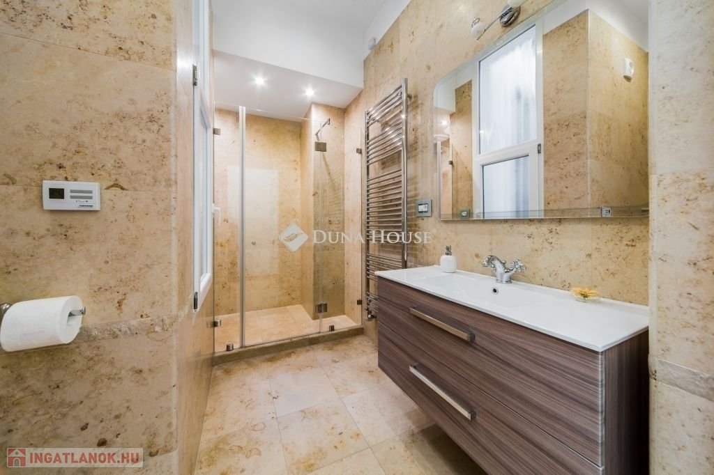 Budapest szívében, a Szent István Bazilika közvetlen közelében kínálunk megvételre egy tágas, 3 hálószobás, teljesen felújított lakást. Az ingatlan egy amerikai konyhás nappalival, két fürdőszobával és egy külön WC-vel rendelkezik. Az egyik fürdőszobában kád, míg a másikban egy nagy méretű, épített mészkő zuhanyzó található a kényelem és a stílus jegyében.