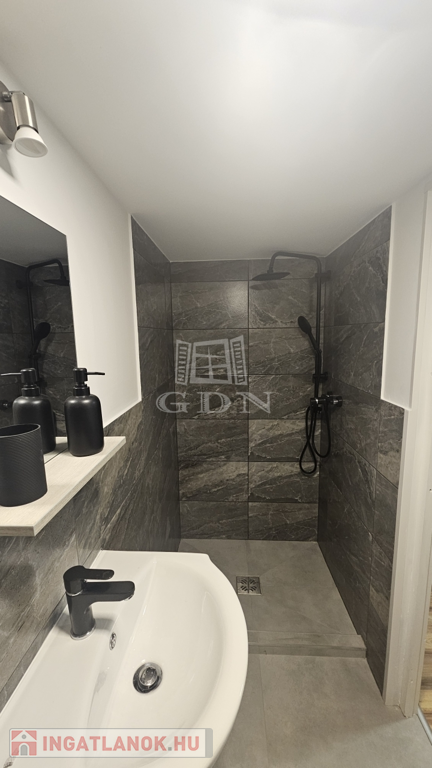 ✅ Fürdő: modern szürke burkolatok, fekete dizájn szaniterek, zuhany, villanybojler, törölközőszárítós fűtőtest, szellőzőrendszer.