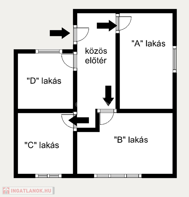 ✅ A négy lakás egy közös előtérből nyílik.