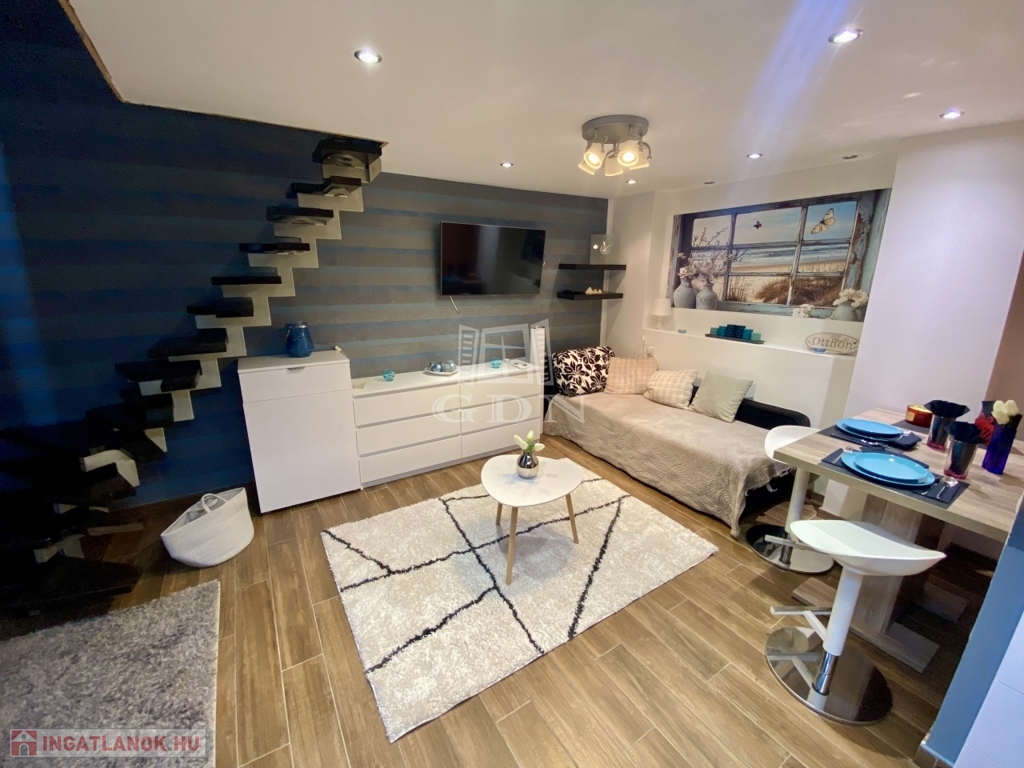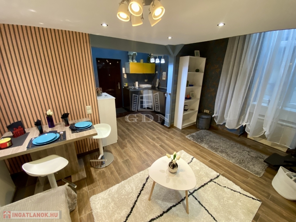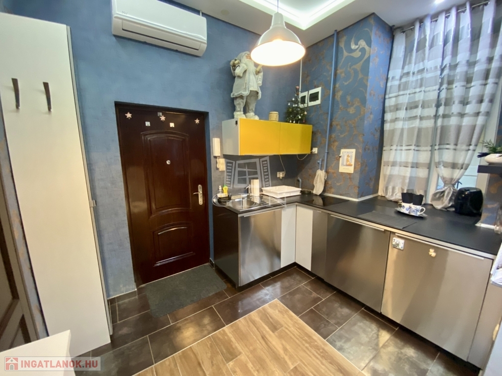VII. kerületben, Erzsébetvárosban, a méltán népszerű Damjanich utcában, rendezett társas házban, földszinti, 27 nm-es, galériás (8 nm), igényesen és a teljes körűen felújított, amerikai konyhás lakás eladó.