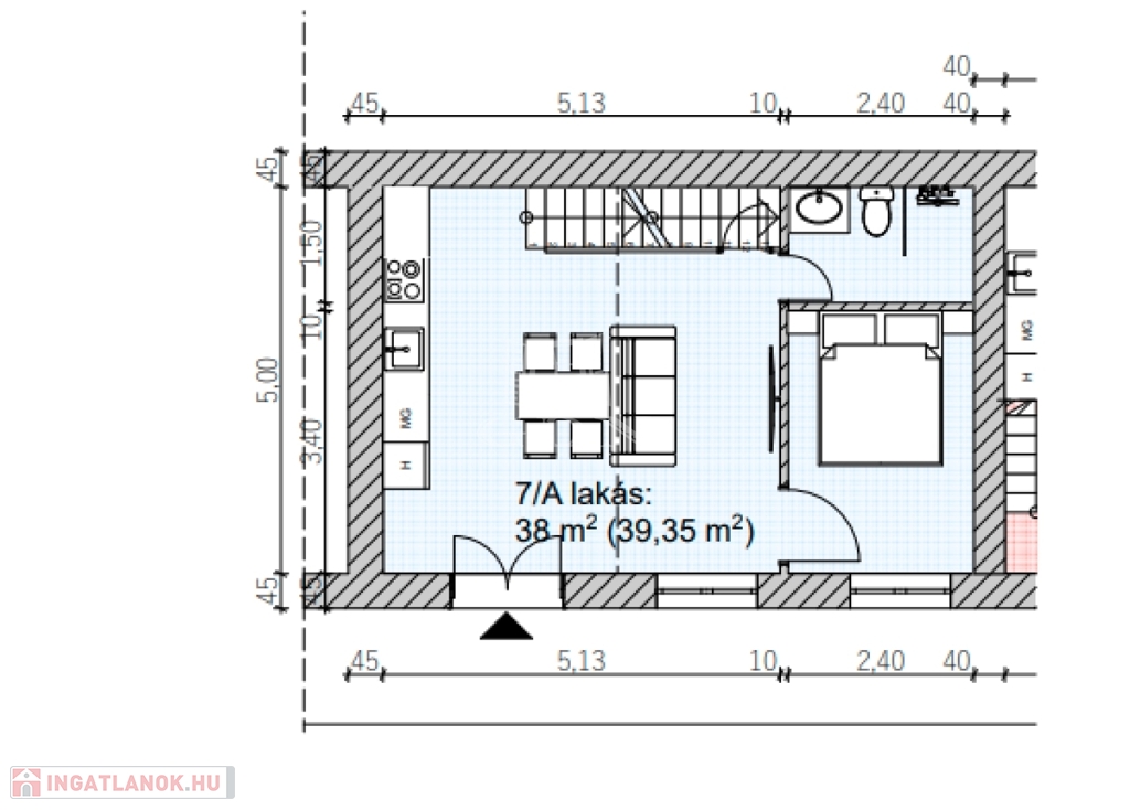 " A"- lakás rendkívül jó beosztású, hasznos alapterülete 61 nm.