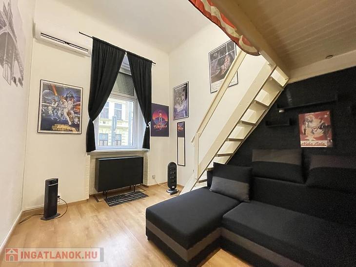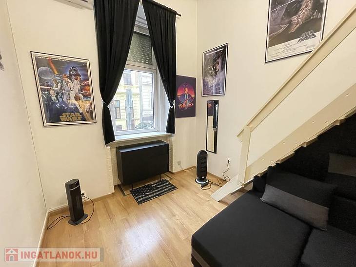 Eladásra kínálunk Budapest VII. kerületében, a Jósika utcában egy 23 m²-es, gondosan felújított, praktikus elosztású lakást. Az ingatlan egy szobából és külön konyhából áll, a szobában kialakított, 158 cm belmagasságú galéria kényelmes alvóteret vagy extra tárolási lehetőséget biztosít, így a lakás tere kiválóan kihasználható. A zuhanyzós fürdőszoba modern kialakítású, letisztult megjelenésű.