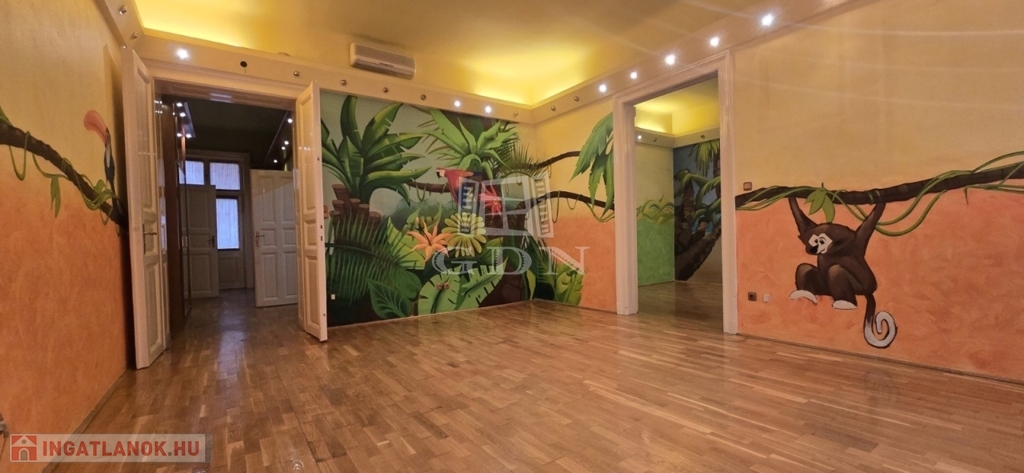 A két tágas szoba utcai nézetű, ennek köszönhetően a lakás rendkívül világos. A 380 cm-es belmagasság tovább növeli a térérzetet, így a lakás akár galériázásra is kiváló lehetőséget kínál.