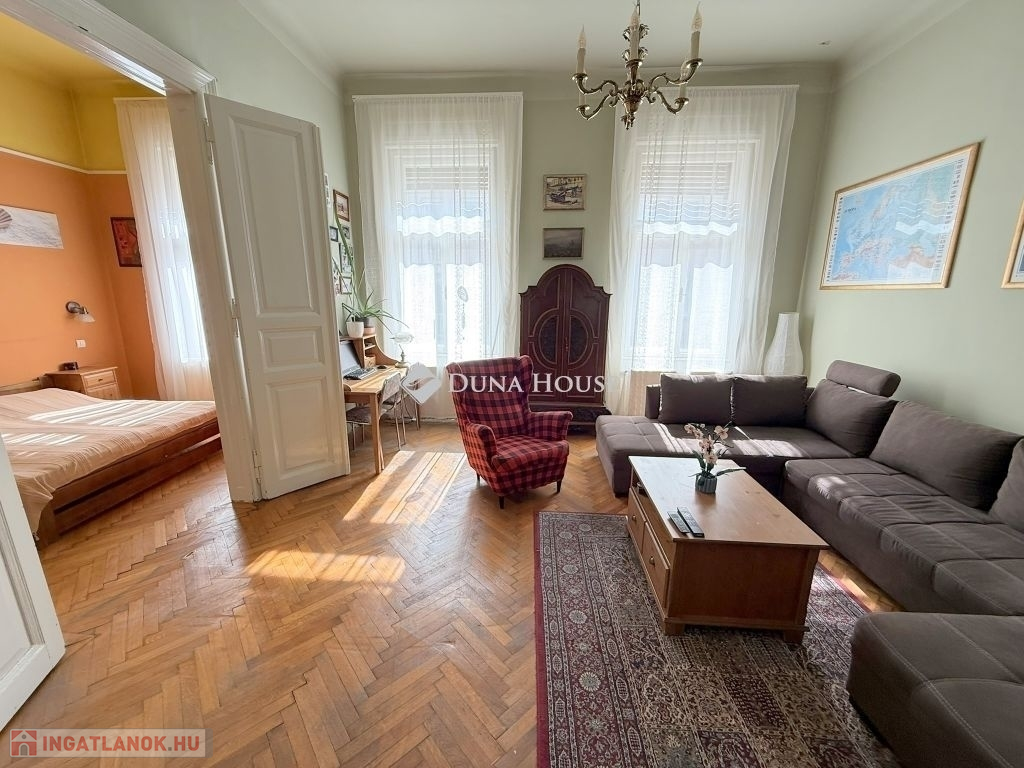 VIII. kerületben, a Rákóczi tértől és a Nagykörúttól egyaránt 1 percnyire, a Salétrom utcában, tégla építésű társasház 2. meletén eladó egy kifejezetten napfényes, polgári értékeinek megtartásával felújított, jó állapotnak örvendő, kiváló elrendezésű, 78m2-es, 2+1fél szobás, tágas tereket kínáló lakás, akár berendezetten is.