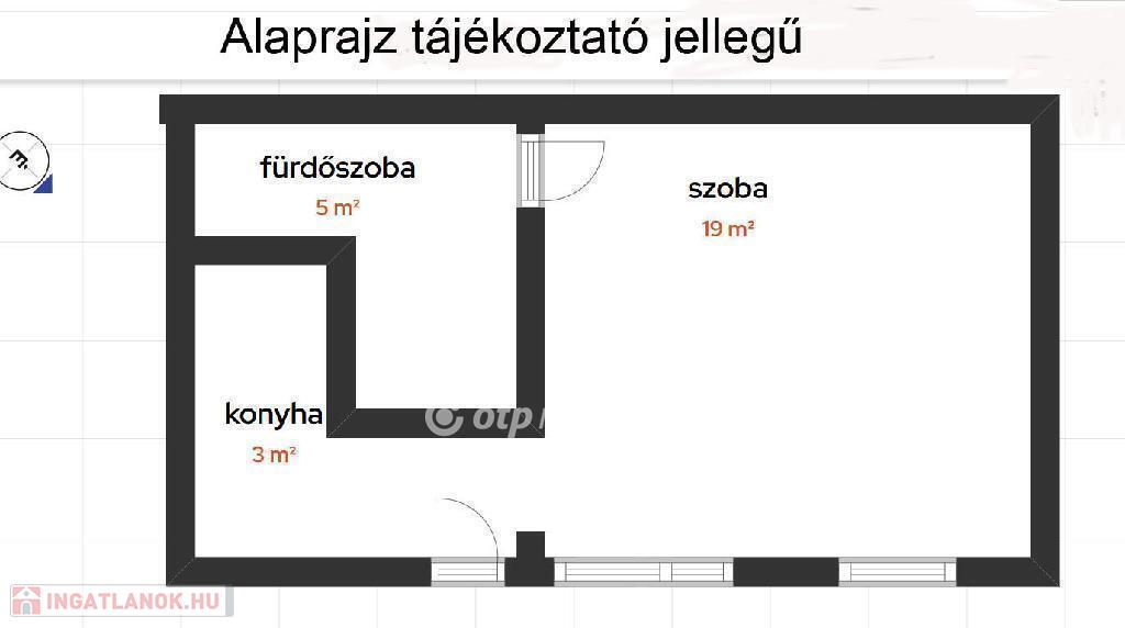 Lakás szobája kocka formájú, 19 nm. két nagy ablaka van. Bejárati ajtó biztonsági.