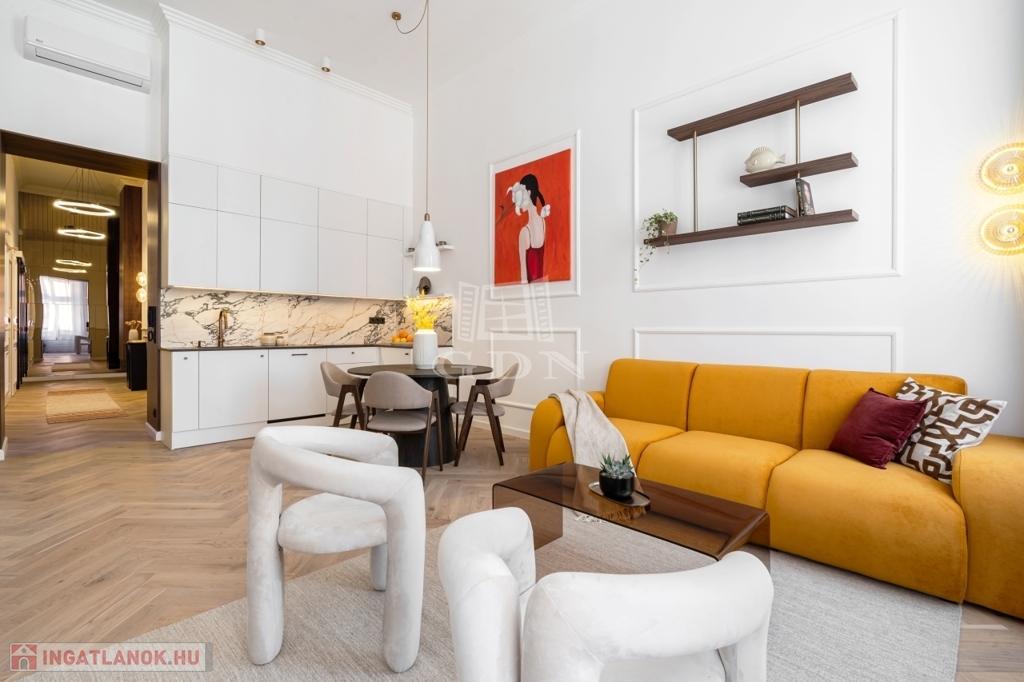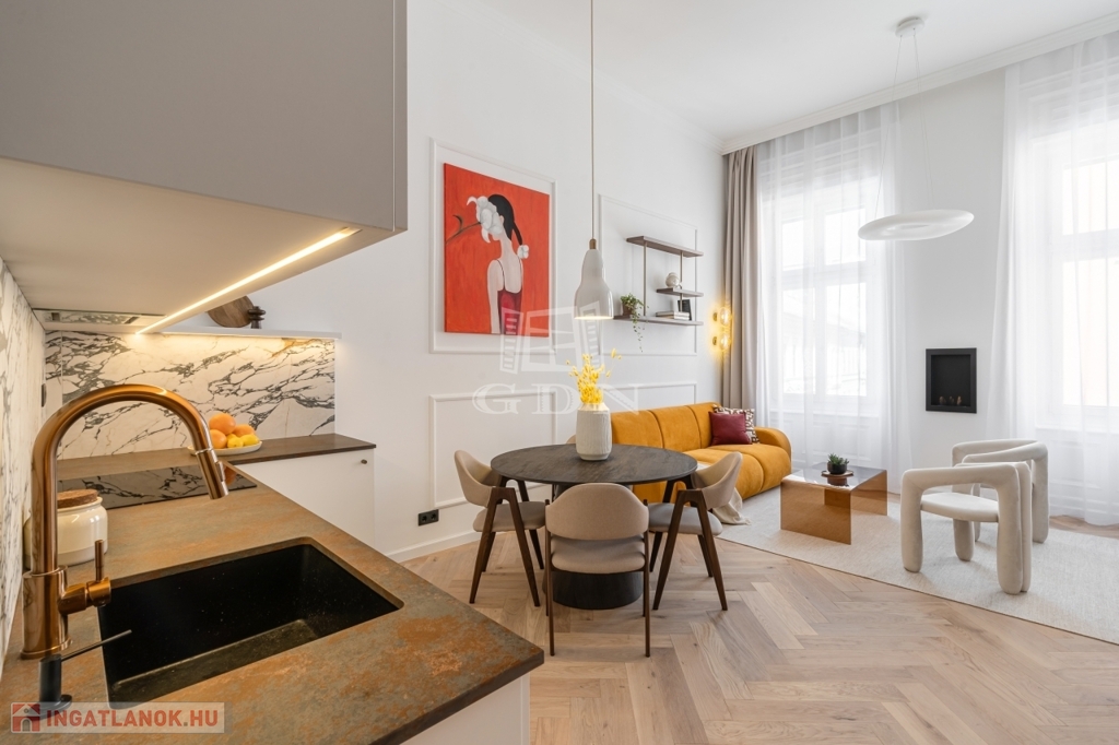 Lépjen be ebbe a frissen felújított, lakberendező által megálmodott lakásba, amely a történelmi Bródy Sándor utcában, egy elegánsan felújított, üvegliftes házban várja új tulajdonosát. A környék hangulatos kávézóival és exkluzív éttermeivel Budapest egyik legkedveltebb városrészének közepén kínál kivételes életérzést.