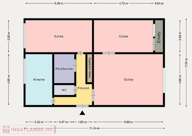 mellékhelyiség és a fürdőszoba külön-külön helyezkedik el. Mind a 3 szobába található hűtő fűtő klíma.