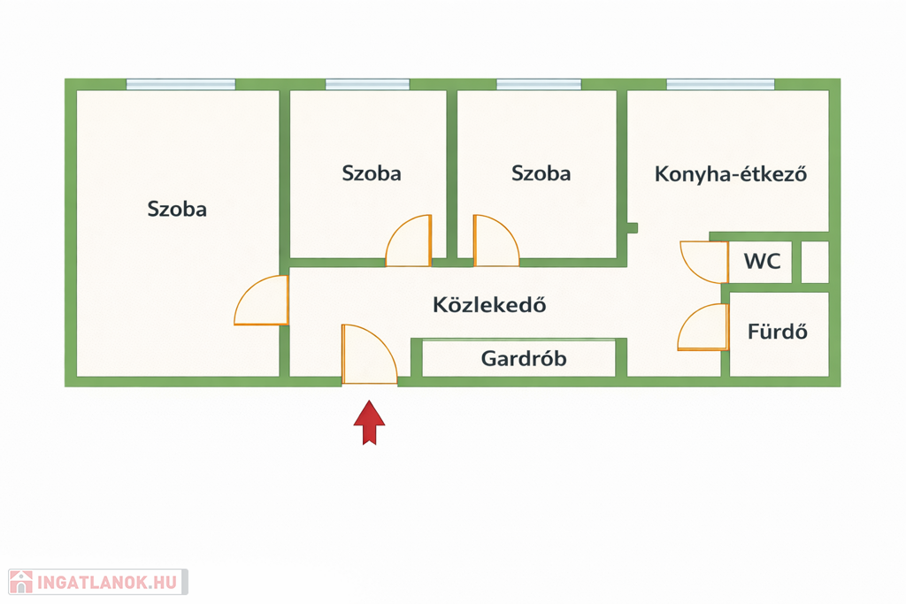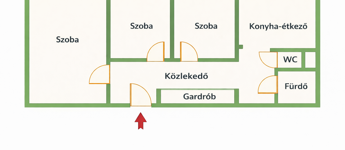 - egy praktikusan kialakított, utólag beépített előszoba, amely bőséges tárolóhelyet biztosít kabátok és cipők számára