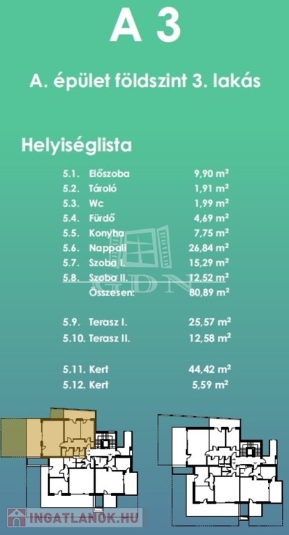 49, 54, 71, 80 nm2 méretű ingatlanok közül lehet választani. Földszinti lakások saját terasszal és kertrésszel míg az 1. és 2. emeleti lakások nagy teraszokkal rendelkeznek.