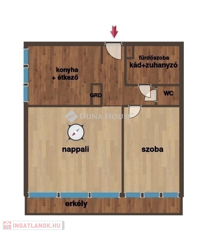 - Tájolás: ÉNy, világos, napfényes
