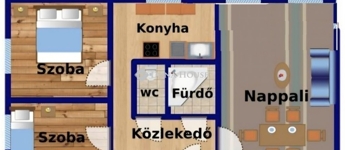 A lakás kifejezetten jó adottságokkal rendelkezik átalakításra is: akár amerikai konyhás nappali + 2 hálós elrendezés is könnyen kialakítható.