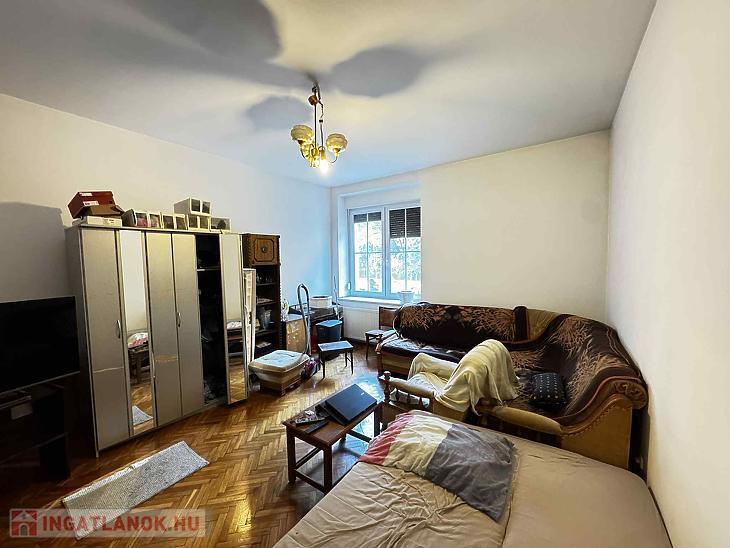 Eladó Németvölgyben, a Királyhágó téren, egy 42 nm-es, 2 szoba + hallos, jó állapotú lakás, egy frissen felújított társasház magasföldszintjén.