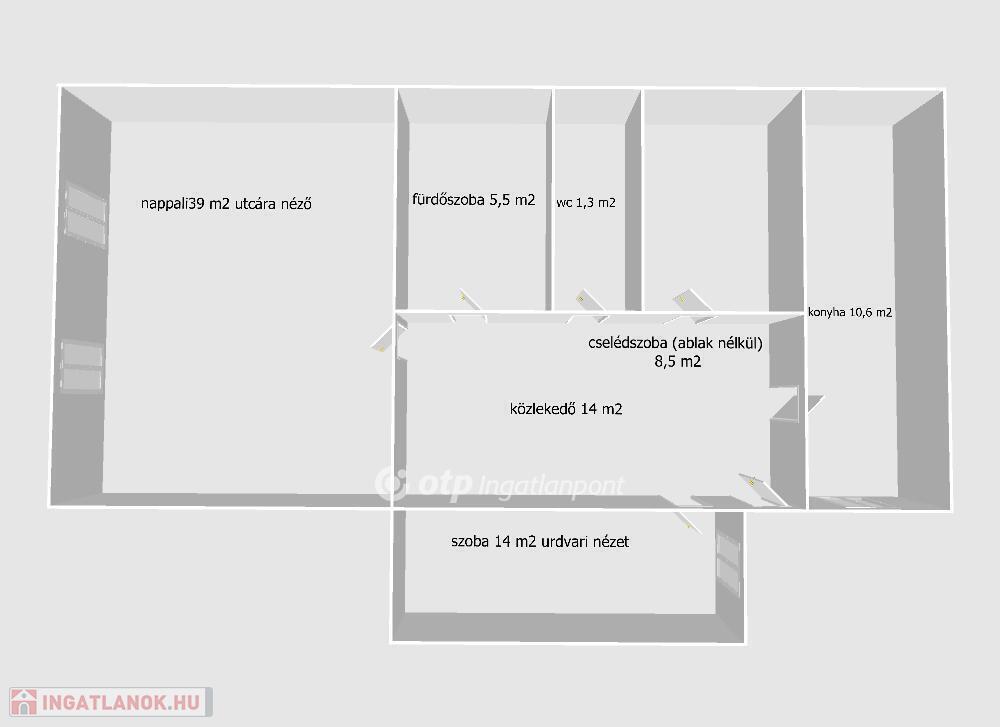 Az ingatlan teljesen FELÚJÍTANDÓ, a konyha melletti cselédszoba falának kivételével egy nagyobb konyha is kialakítható.