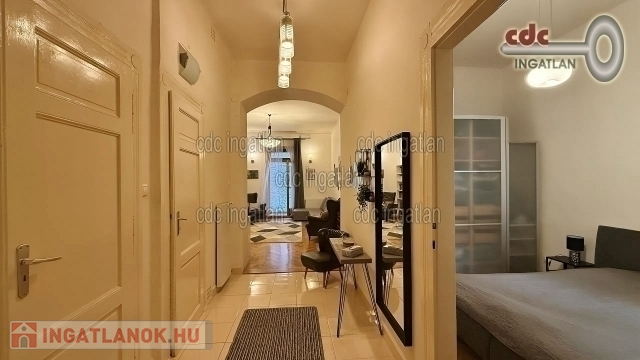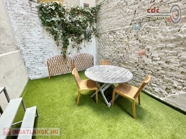 Az ingatlan nappali + 1 hálószobás, tágas terek és nagy belmagasság jellemzik. Különlegessége, a hozzátartozó 12 m²-es, kizárólagos használatú belső terasz. A lakás udvari nézetű, kifejezetten csendes és hangulatos, meghitt atmoszférát biztosít. Közös költsége 14.000 Ft, mely tartalmazza a korlátlan vízfogyasztást is.