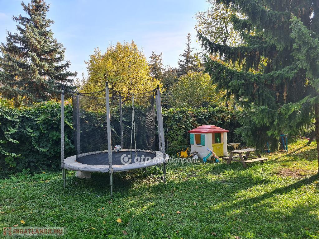 Az ablakokon függönyök, elektromos, távirányítóval irányítható redőnyökkel minden helyiségben. Az udvara 1011 m2, zárt, játszótérrel felszerelt.