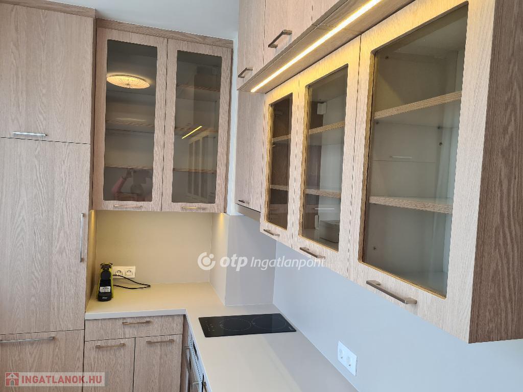 A fürdőszoba fürdőkádas, mosó-szárítógéppel felszerelt. A konyha beépített, jól pakolható szekrénnyel, 2 főzőlapos kerámia tűzhellyel, beépített hűtővel, sütővel, mosogatógéppel, kapszulás kávéfőzővel felszerelt. Az előszobában szintén beépített szekrény került kialakításra, a kabátoknak, cipőknek.