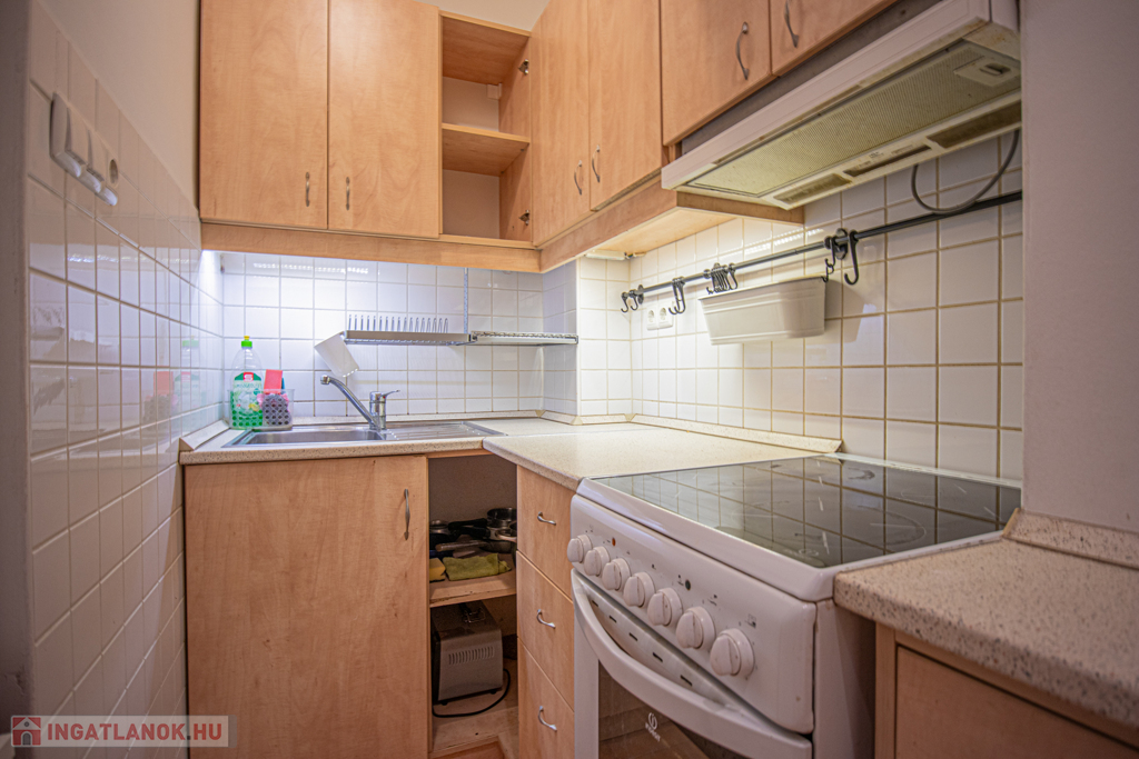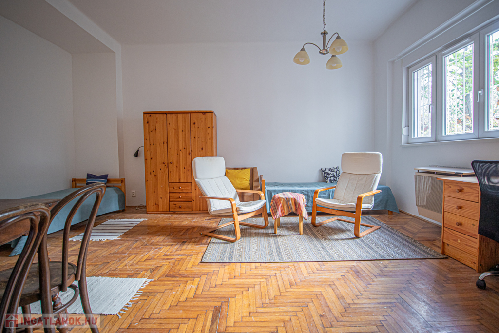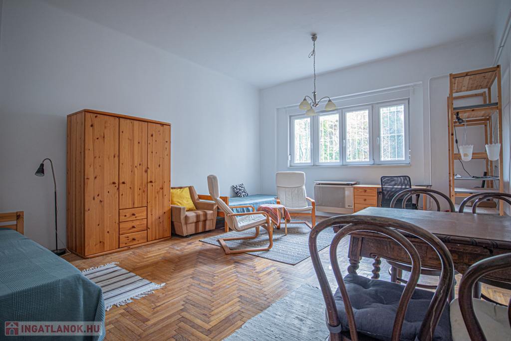 A lakás ablakai a ház kertje felé néznek, ennek köszönhetően csendes, nyugodt a lakás.