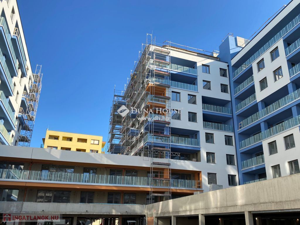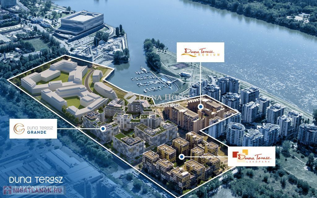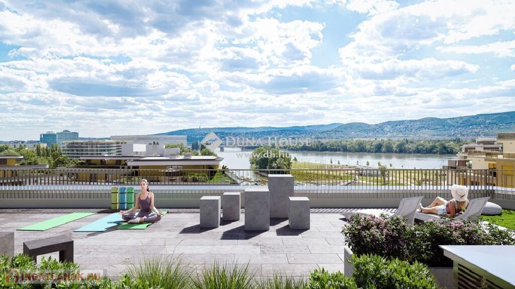 Nagy teraszos! Magas emeleti!Eladó a 13. kerületben a Marina Parton, a most épülő Duna Terasz Grande-ban egy 52m2+24m2-es, 7. emeleti, 2 szobás, D-i tájolású, Dunai Panorámás, világos lakás.Okos-otthon megoldások, és mennyezet hűtés-fűtés gondoskodik a gazdaságos üzemeltetésről.A társasházban: Recepció szintű portaszolgálat, és csomagpont található.A közösségi életről pedig a közösségi tetőteraszok (jóga + napozó és grillterasz) a játszóterek és a lakók számára használható sporteszközök gondoskodnak.A környék:A Duna Terasz Grande olyan lenyűgöző adottságokkal rendelkező helyszínre épül, amelyből városszerte kevés létezik. A XIII. kerületi Vizafogó városrész állandóan fejlődő, megújuló, új-építésű házakkal övezett lakóövezete egyedi életmódot biztosít a lakóinak.Képzeld el, hogy a nap végén a lenyűgöző Duna-parton ülve nézed naplementét! A helyszín garantálja, hogy mindennapjaid része lesz a folyó, a sétány és a kikötő.Pár lépésre a Duna part, de számtalan szórakozási és sportolási lehetőséget talál ebben az exkluzív környezetben: Marina sétányon játszóterek, kültéri edzőterem, teniszpálya igényes éttermek, kávézók, élelmiszerbolt, jacht kikötők, kondi termek, medencék, futó pálya.Frekventáltságát tekintve 5 percre a 3-as metró, buszok, kerékpárút szinte a ház előtt, a kikötő kb. 100 méter, így akár autóval, biciklivel, metróval vagy akár hajóval is elérheti a belvárost.Befektetés:A Duna-parti lakások igen kedveltek a befektetők körében, nem ok nélkül. A korlátozottan rendelkezésre álló, Duna menti telkeken épült ingatlanok azon felül, hogy értékállóak minden évben jelentősen növekszik az értékük, illetve gyorsan és egyszerűen bérbe lehet adni, így akár kiemelkedő hozamot biztosítanak tulajdonosaiknak.Ha Ön családjával egy nyugodt, biztonságos, tiszta levegőjű, kényelmes otthont keres, vagy akár egy jó befektetést, várom szíves hívását!