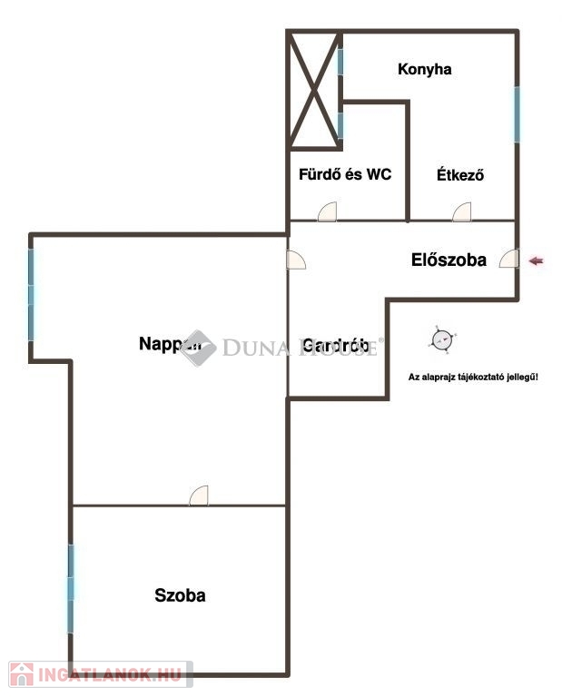 – jelenlegi elosztás: étkezős konyha, nappali, külön háló, fürdő
