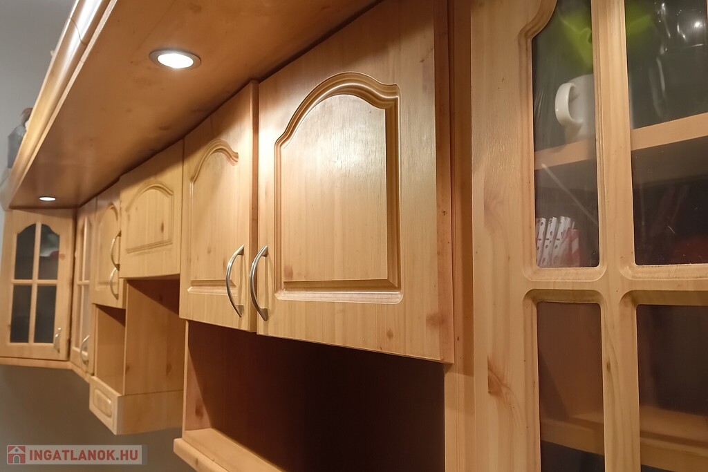 A konyhában lévő egyedi fali szekrények az ingatlan részét képezik, a vételárban benne vannak.