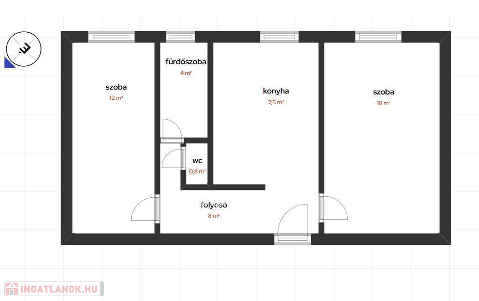 A szobák KÜLÖN NYÍLNAK, ablakai ZÖLD kertre néznek, az ingatlan délkeleti tájolású.