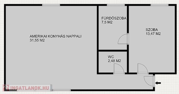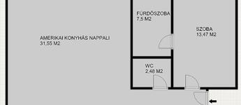 A lakásban tágas amerikai konyhás nappali, szoba, fürdőszoba és mellékhelyiség kerül kialakításra.