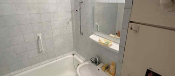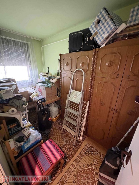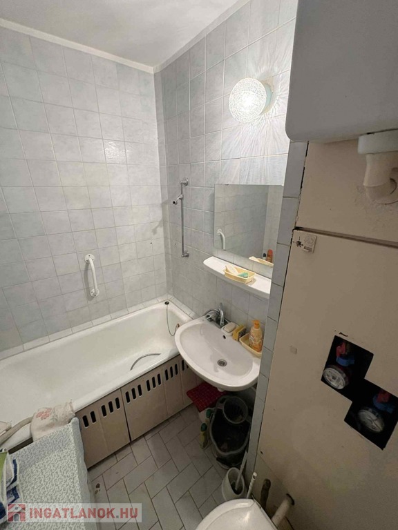 A hálószoba közel 7 négyzetméteres, szintén laminált parkettával burkolt, kialakításának köszönhetően egy nagyobb franciaágy is kényelmesen elfér. A kádas fürdőszoba és a WC egy helyiségben kerültek elhelyezésre, itt is szintén cserélve lettek a burkolatok, de korszerűsítést igényelnek.