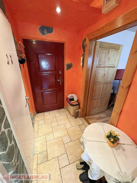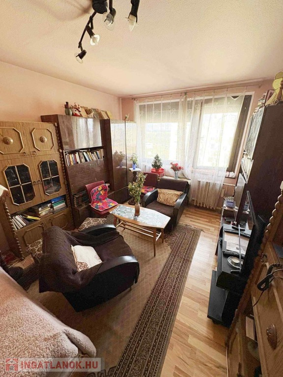 A lakásba belépve egy előszoba fogad, a nagyon jó elosztásának köszönhetően minden helyiség innen közelíthető meg. A nappali tágas, laminált parkettával burkolt, nyílászárói régebbi faszerkezetűek, illetve minden ablak redőnnyel ellátott, a bejárati ajtó korszerű több ponton záródó biztonsági.