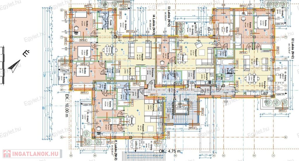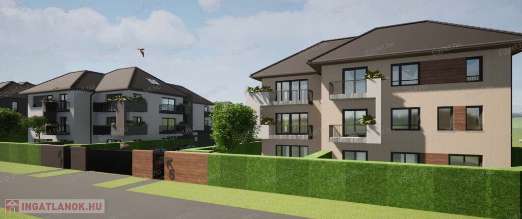 Ennél a beruházásnál még több egyéb méretű lakás elérhető, akár a nettó 86 nm-es 4 szobás lakásig, a földszinten kertkapcsolattal, vagy az emeleti lakásoknál dupla teraszokkal.