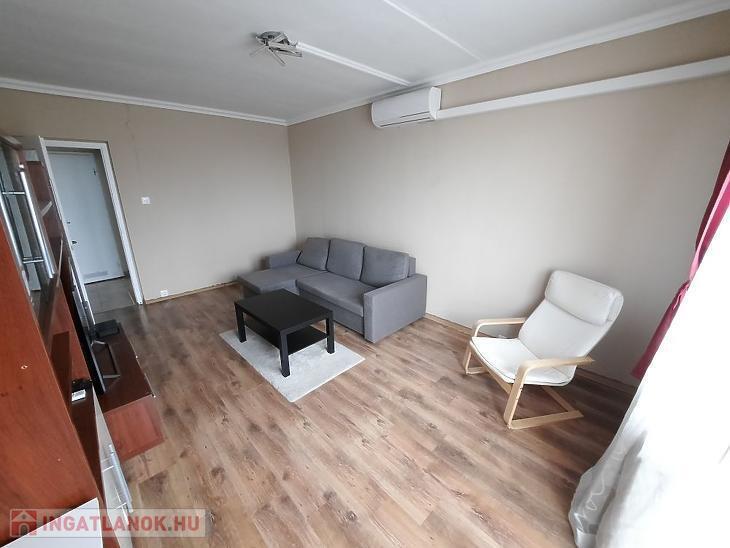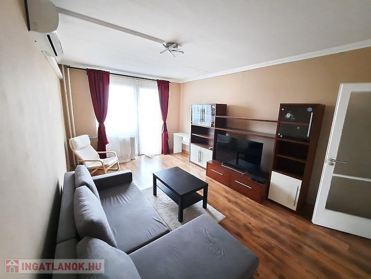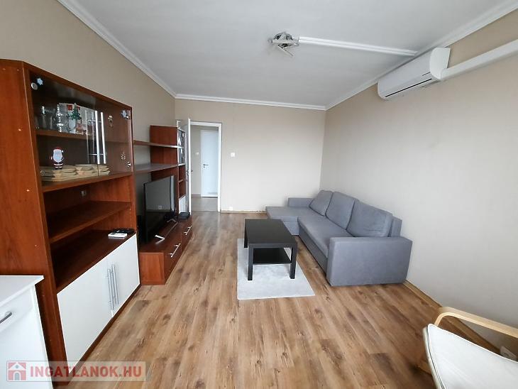 A helyiségek burkolatai igényes állapotúak: a közlekedő és a konyha járólapos, a szobákban laminált parketta található. Műanyag nyílászárókkal rendelkezik. A lakás komfortját hűtő-fűtő klíma is növeli. A fűtést korábbi típusú, de egyedi mérős radiátorok biztosítják, ami gazdaságos fenntartást eredményez. A tágas erkély csendes, zöld parkra néz, így tökéletes helyszín a reggeli kávéhoz vagy egy esti pihenéshez. A konyhabútor a vételár része, a többi bútor megegyezés tárgyát képezi.