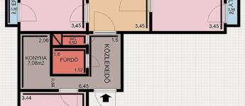 Elosztás: 2 egész szoba + 1 félszoba + tágas hall (étkezőnek vagy nappalinak is ideális)