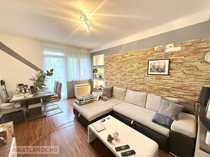 Az ingatlan jó állapotú, ahol minden helyiség laminált parkettával burkolt, jó állapotúak, a konyha gépesített. A fürdőszoba és a mellékhelyiség teljes felújításon esett át 2020-ban. Műanyag nyílászárók kerültek cserére 2 rétegű üveggel és redőnnyel bővítve. Fűtését a gázkonvektorok biztosítják, a melegvizet pedig gázbojler.