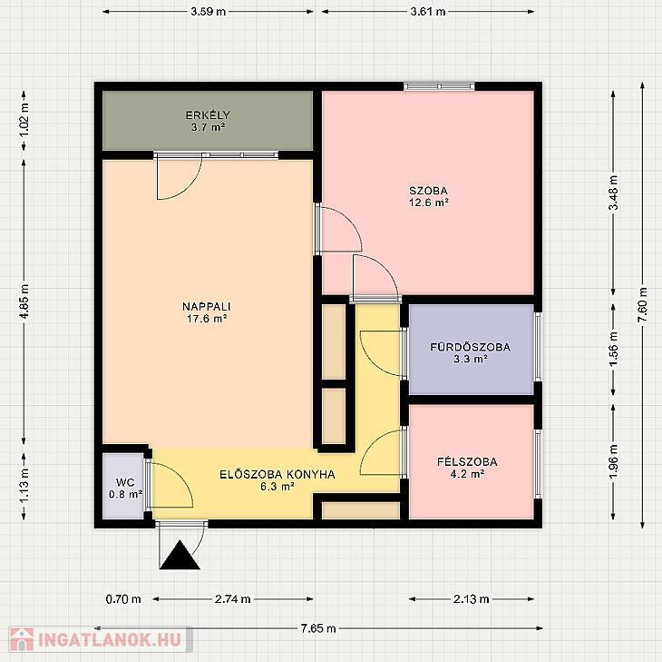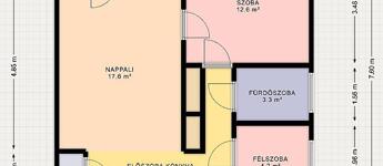 A lakás 52m2-es, tégla építésű, 4nm loggiával.