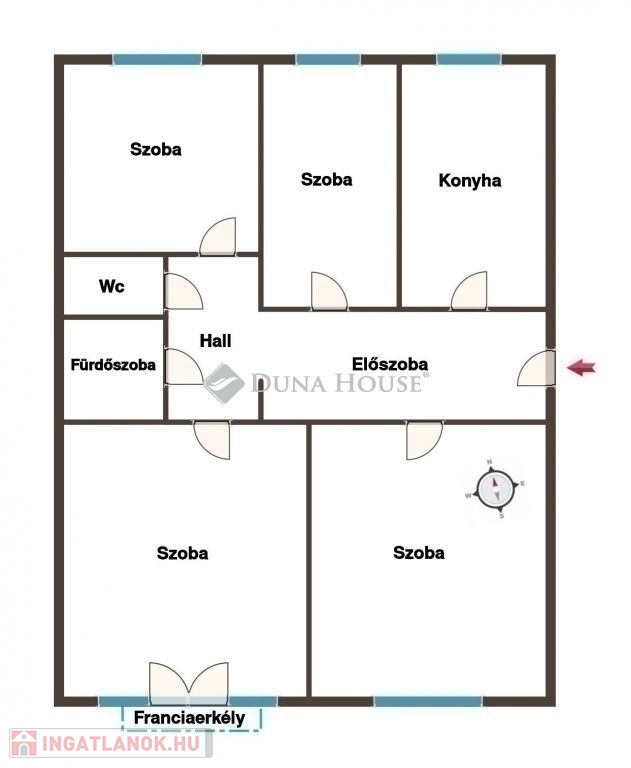 Az ingatlanban a már említett 4 különnyíló szobán kívül egy ablakos konyha, egy előszoba, egy hall, egy fürdőszoba, és egy külön wc helyiségek kaptak még helyet. A használaton kívüli dolgok tárolását számos beépített szekrény segíti, ezen felül a ház pincéjében is használható még tárolóhelyiség. A legnagyobb szobából zöldre néző franciaerkély nyílik. Elrendezése kiváló, a helyiségek mindegyike funkciónként különnyíló, így nagyobb családok számára, illetve bérbeadásra is ideális, utóbbi esetben akár szobánként, magas hozammal kiadható.