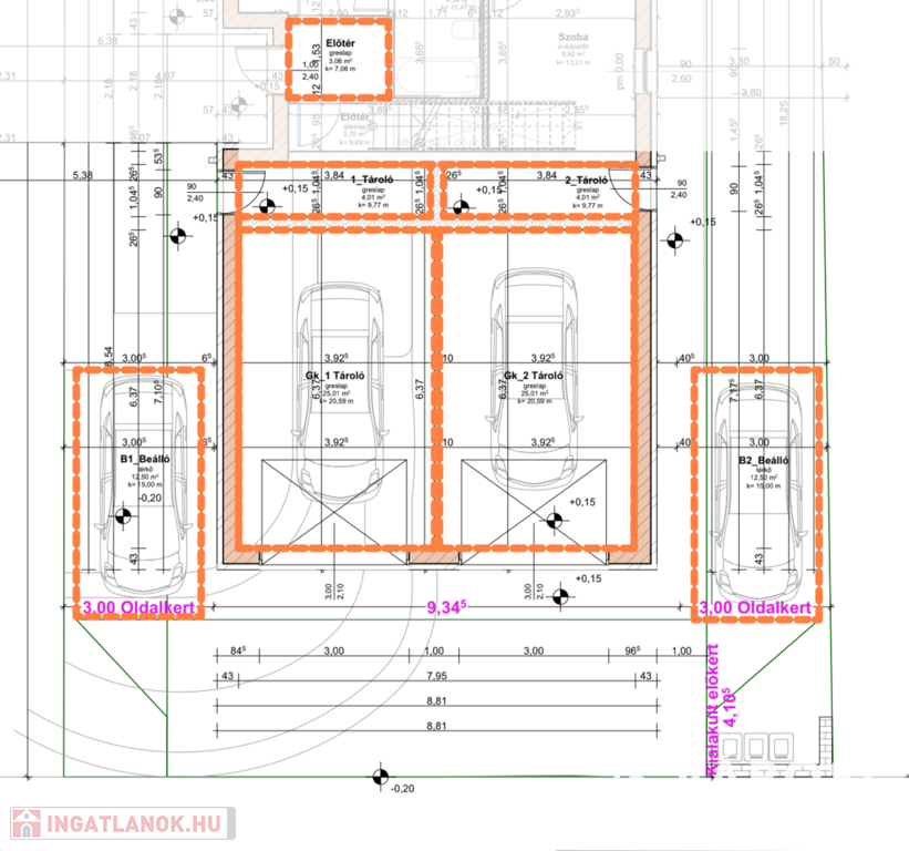 - A lakásokhoz garázs vásárolható 5,5 Mft, vagy gépkocsi beálló 1,5 Mft.