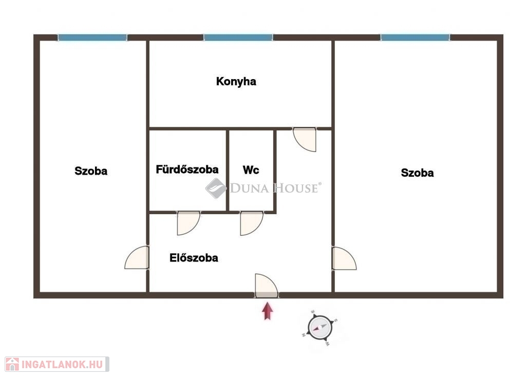 Az ingatlanban két különnyíló, tágas szoba, egy ablakos, étkezéshez is elegendő teret kínáló konyha, egy fürdőszoba, külön wc, és egy előszoba helyiségek kaptak helyet. Elrendezése kiváló, a két tágas szoba a lakás két ellenkező végén található, így áthallás nincsen közöttük, ennek köszönhetően például szobánként is bérbe adható, illetve két különböző napirendet követő családtag számára is ideális.