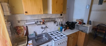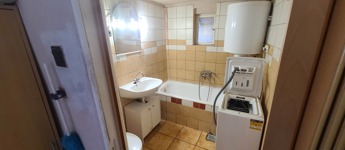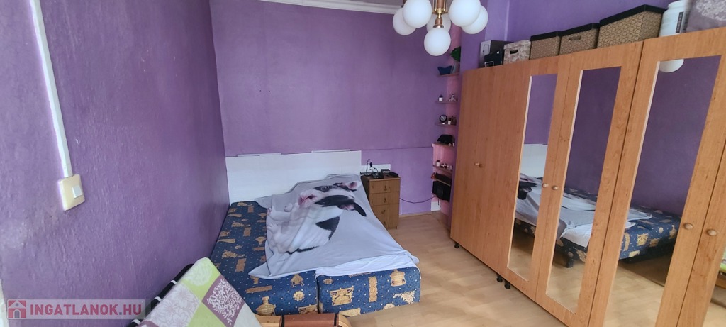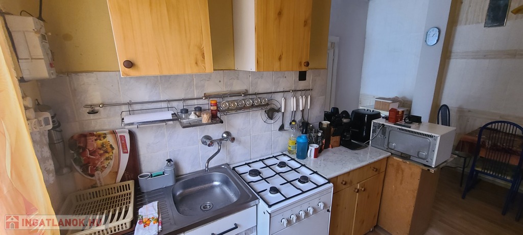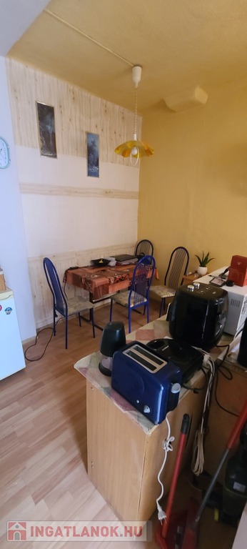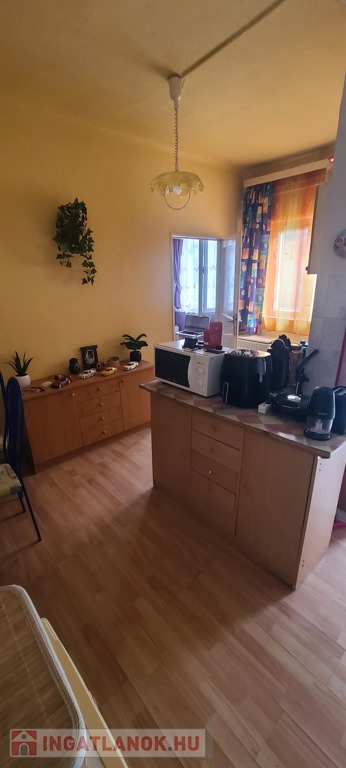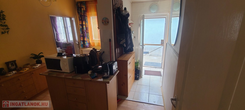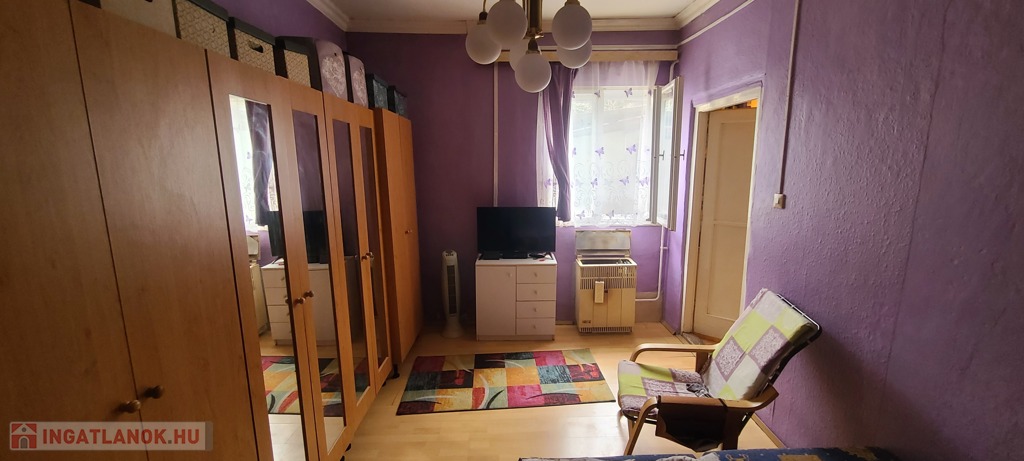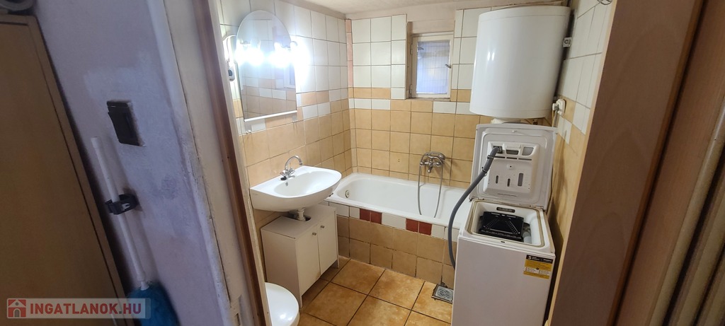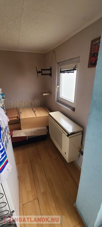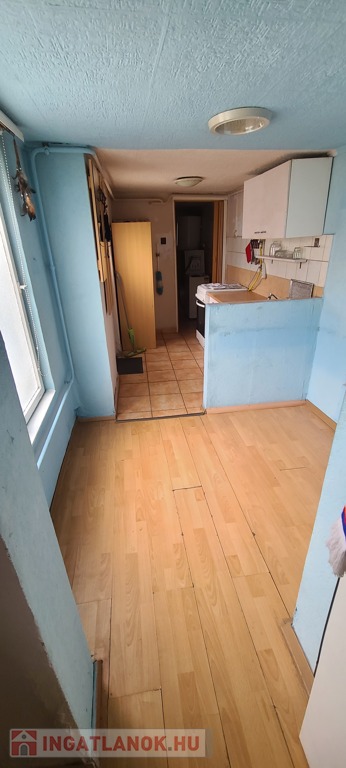 Kisebbik:Alacsony belmagasság,szoba(3,9nm)konvektorral ,kis müanyagablakkal.Egyben folyósószerü étkező és konyha(8,2nm)és kádas,wcvel együtt fürdőszoba(5,75nm)amiben van a 80as bojler ami ellátja mindkét lakást!Kert kapcsolat nincsen,kindenhol régi nyilászárok!Nem dohos,nem vizes,igények szerint felújitandó-alakitható!Ķ.költség:10e ft ebben a kukaszállitás,és a viz benne van.17,2mm