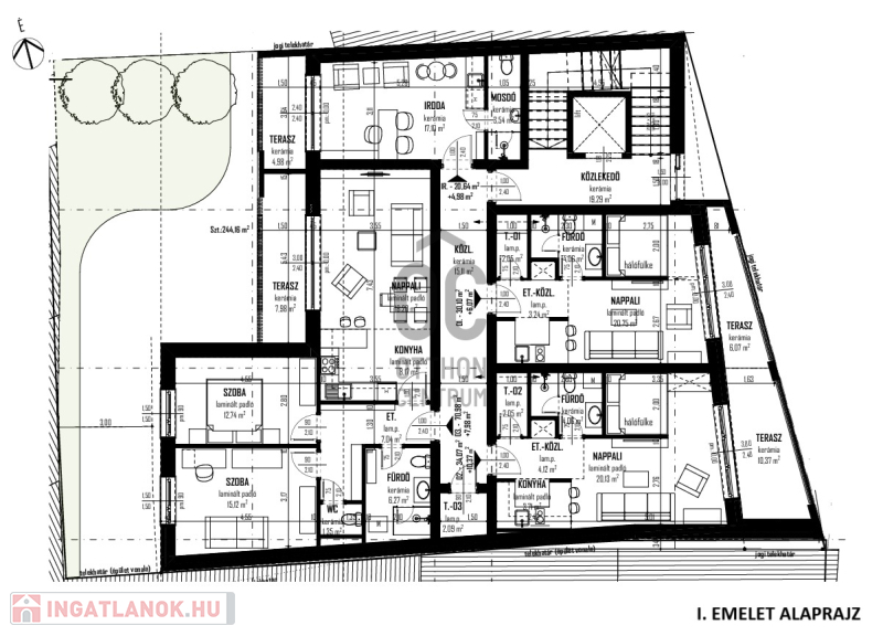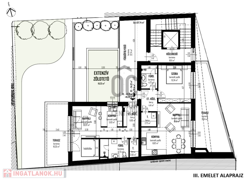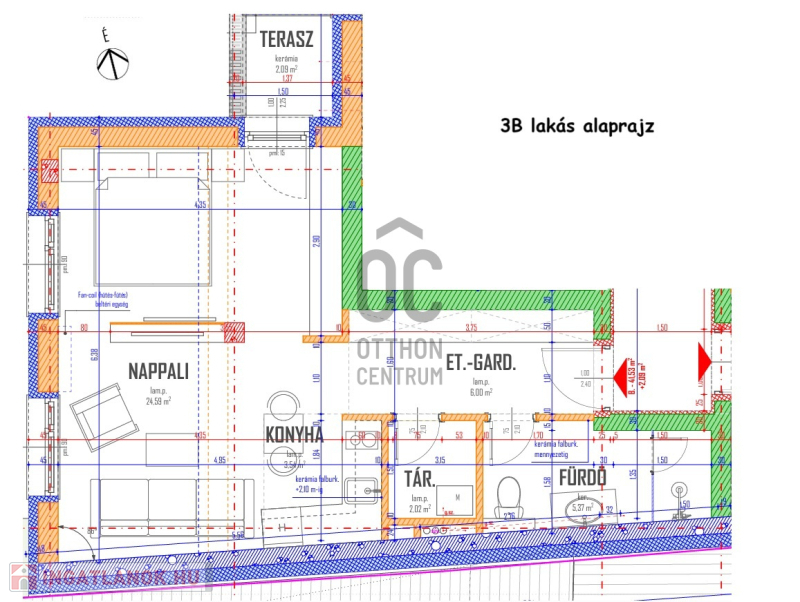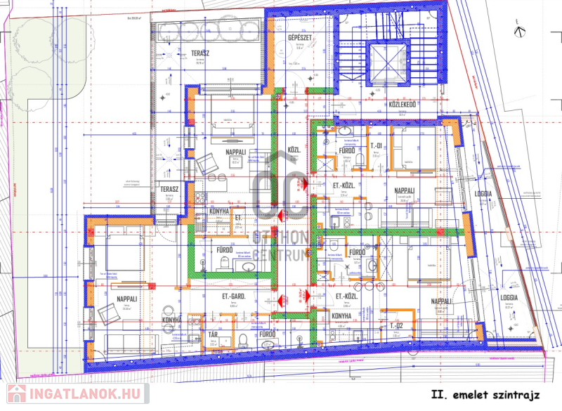 II. emelet 3/B. lakás 42 nm + 2 nm terasz: