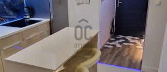 A lakás egyik legnagyobb előnye a konyha központi elhelyezése, amely nemcsak praktikus, hanem az átgondolt átalakításnak köszönhetően egy plusz lakószobát is eredményezett, így az ingatlan valóban kivételesen jó beosztású.