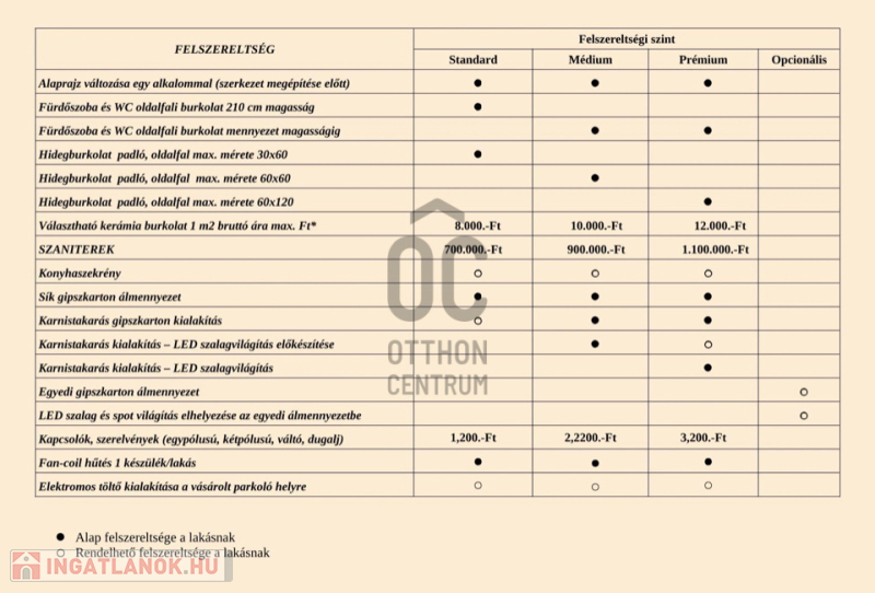 Standard felszereltségű lakásokra-hitelmentes konstrukció esetén, GOLD fizetési konstrukcióval ! 1.324.000 Ft/nm