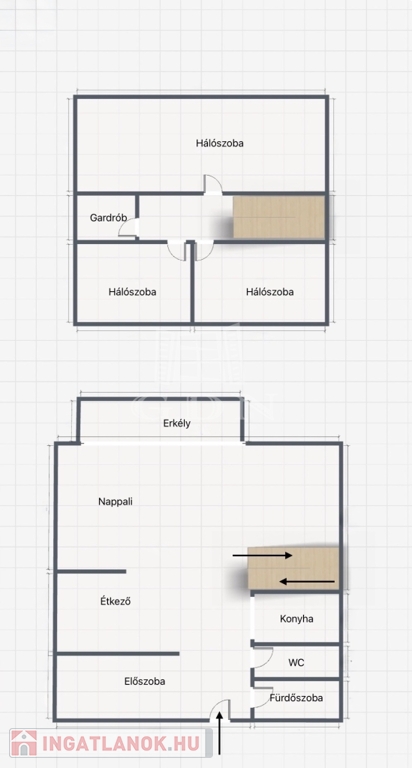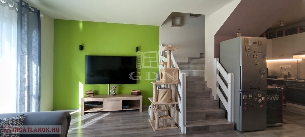 Az 1.emeleten, 71,59 m²-es, 2009-ben épült lakás, amely egy rendezett, 13 lakásos társasházban található. Az alsó szinten amerikai konyhás nappali, fürdőszoba található. Fent pedig 3 hálószoba + gardróbszoba kapott helyet (a gardrób akár fürdőszobává is alakítható, a kiállások adottak).