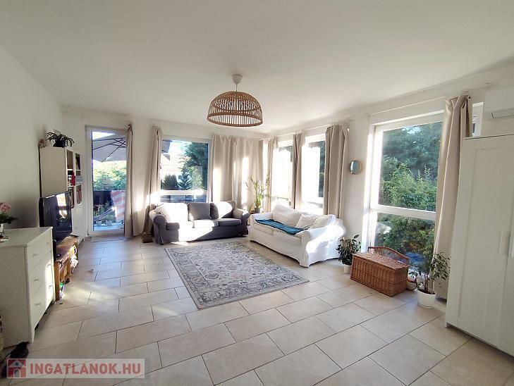 A lakáshoz tartozik egy saját használatú, 300 nm-es kert és egy gépkocsi beálló is.