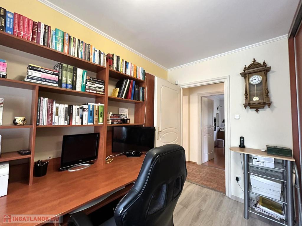 ELADÓ Pest megyében, Érden, az Ürmös utcában, rendezett társasházban 3 hálószobás, (12m2, 10,5 m2, 8 m2) amerikai konyhás, magasföldszinti, belső kertre néző, csendes, ERKÉLYES, KLíMÁS, keleti-délkeleti tájolású, 94 m2-es lakás.