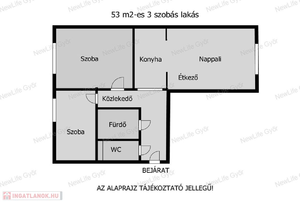 - 3 szoba (amerikai konyhás nappali étkezővel + 2 hálószoba
