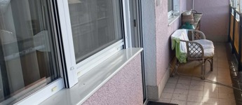 A lakás nyugati oldalán, teljes szélességben erkély húzódik, a nappaliból és a mellete lévő szobából is ki lehet lépni.
