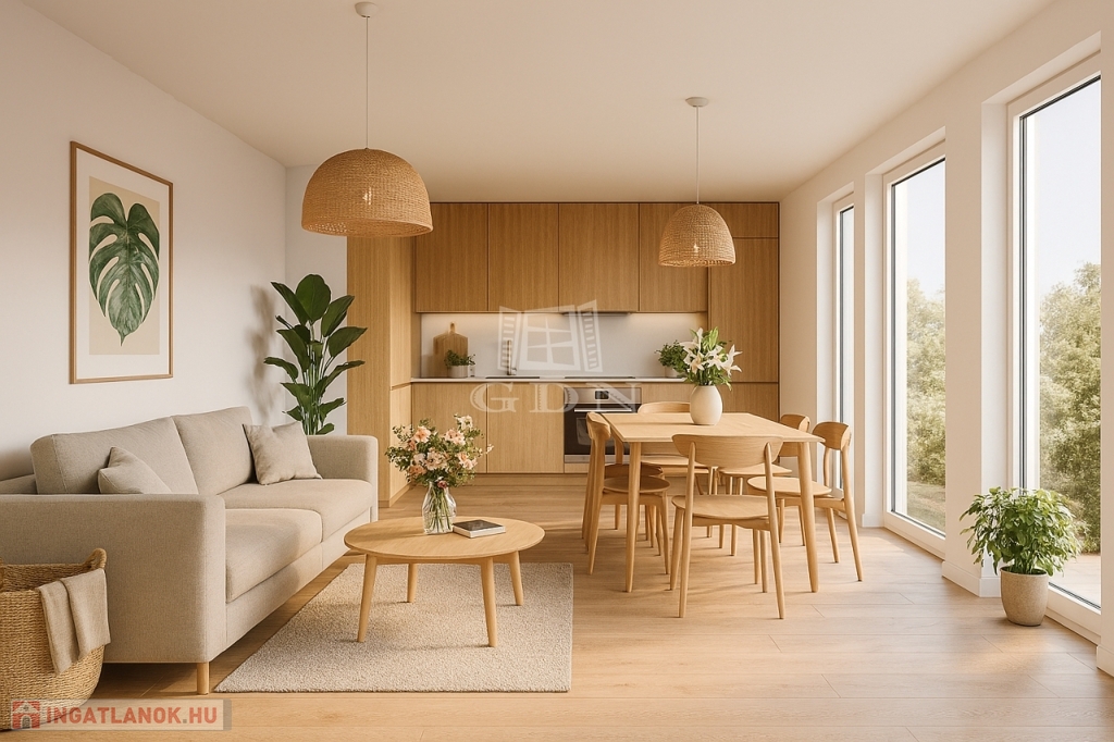 A lakás a tervek alapján konyha, nappali, szoba, kamra, fürdőszoba, mellékhelyiség, és előtér térfelosztású. Az ingatlanhoz egy 5,65 m2-es terasz is tartozik. Igény esetén a lakásban egy további szoba is kialakítható.