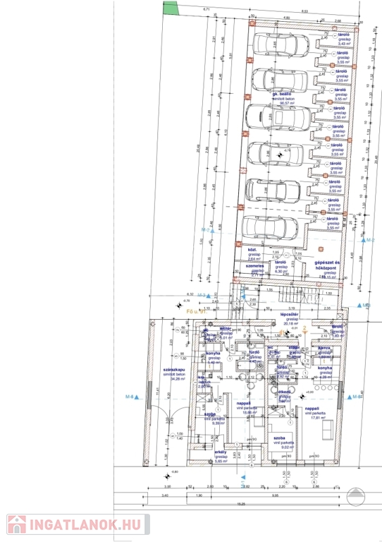 A társasház zárt, elektromos kapubeállóval ellátott udvarán kialakított felszíni beállóhely 2.500.000. Ft-ért, míg "garázs" és hozzá tartozó dupla méretű tároló helyiség 8.000.000.-Ft-ért vásárolható a lakásokhoz.